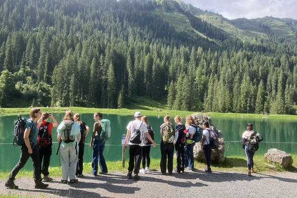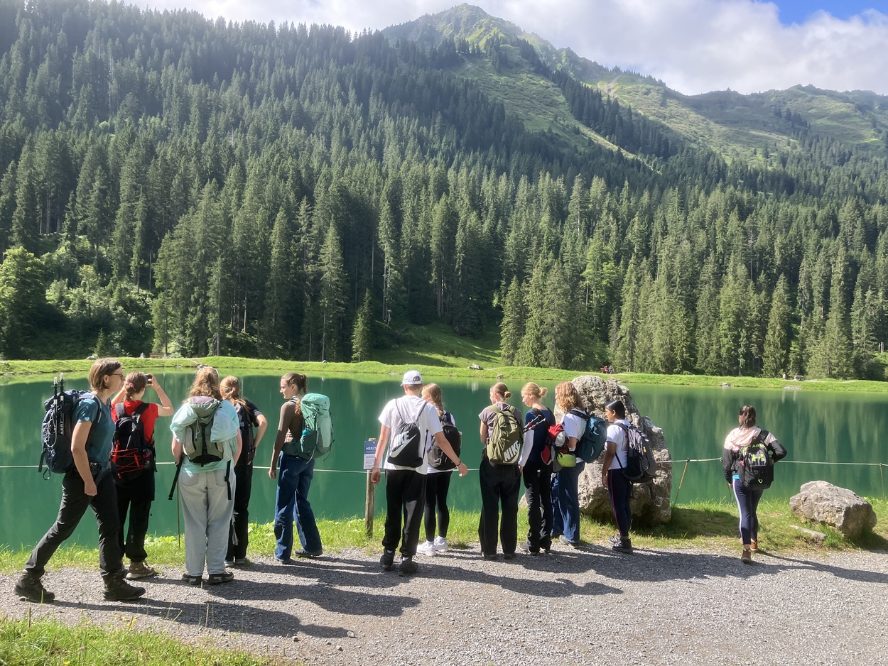 Am nächsten Tag stand eine Tageswanderung auf dem Plan Unsere Route zur Schwarzwasserhütte war perfekt, um unser geographisches Wissen anzuwenden. Von Lawinenhängen über Trogtäler und Kerbtäler konnten wir auf unserer Wanderung so einiges entdecken. Wir bewältigten alle die 400 Höhenmeter bis zur Hütte und belohnten uns oben mit vier riesigen Portionen Kaiserschmarren, über die wir alle nach dem anstrengenden Anstieg froh waren. Nach der Mittagspause wanderten wir alle zurück zur Talstation vom Ifen, fuhren eine letzte Gondelfahrt und schon bald neigte sich auch dieser Tag dem Ende zu. Also fielen alle nach einer Spielerunde müde ins Bett.